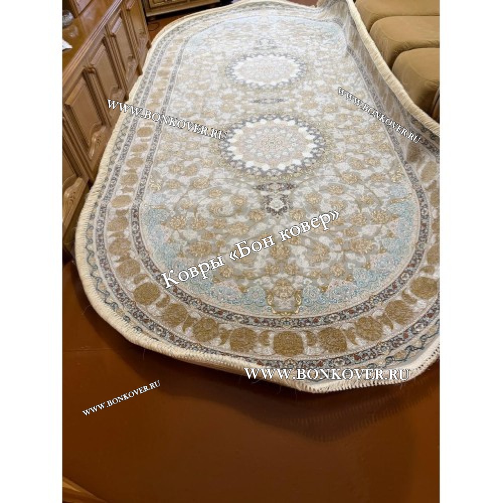 Элегантный Иранский Овальный Ковер Для Гостиной Арт 30246 наполняет интерьер квартиры теплом и уютом, гармонично сочетает в себе изящество и красоту. Он соткан из износостойких материалов, комфортный и долговечный.